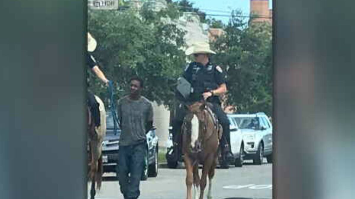 El hecho ha ocurrido en el estado de Texas, en Estados Unidos. Dos policías montados a caballo han llevado a un hombre negro detenido atado con cuerdas.