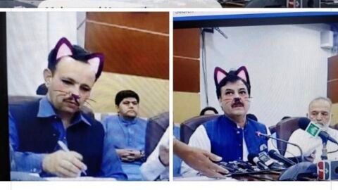 Un error en la retransmisión en directo de una rueda de prensa del ministro de información de Pakistán, Yousuf Shaukat Zai, ha provocado que apareciese con un filtro de gato. Durante esta conferencia con periodistas, a Yousuf le comenzaron a salir coloretes, orejas, nariz y bigote de gato.