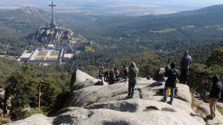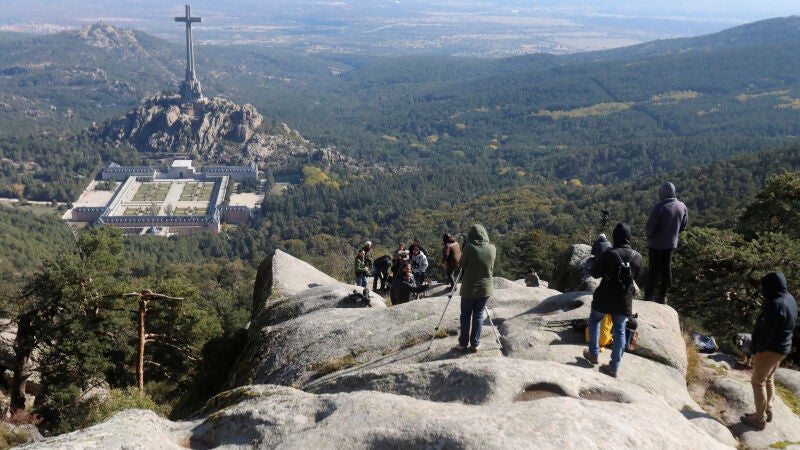 En el Valle de los Caídos, los periodistas se han situado en un espacio habilitado en la entrada del recinto, ya que tienen prohibido acceder a otras partes del Valle de los Caídos y subir a la zona de la basílica.