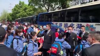 Banderas, flores y música reinan en las ceremonias de despedida del personal sanitario que fue desplazado a Wuhan para evitar el colapso hospitalario durante los peores momentos de la crisis del coronavirus, que ahora ya suenan lejanos en la cuna de la pandemia. La ciudad ha dicho adiós a un centenar de enfermeras de la provincia oriental de Shandong, parte del contingente de más de 42.000 sanitarios de todo el país que fueron destinados a finales de enero y principios de febrero a la provincia de Hubei y, en particular, a su capital, Wuhan, para contener y derrotar al virus. Sin embargo, la situación en Wuhan ha cambiado en parte gracias a la ayuda de estos trabajadores, y de los hospitales saturados y la falta de medios se ha pasado -según cifras oficiales- a cero contagios y una única muerte en la ciudad contabilizada anteayer, así como a los preparativos para el fin de una cuarentena de casi 11 semanas.