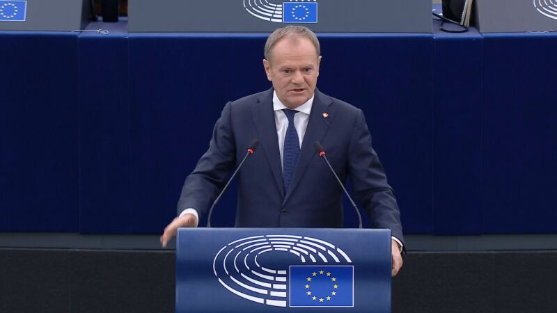 Donald Tusk, primer ministro de Polonia y presidente del Consejo de la Unión Europea, ha lanzado un mensaje en su discurso ante el Parlamento Europeo en Estrasburgo (Francia): "Para que Europa sobreviva, debe estar armada".