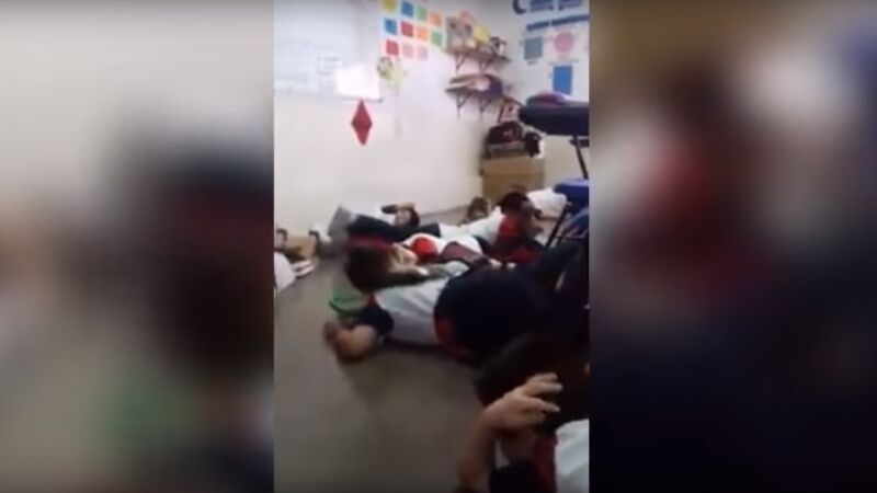 Una profesora finge un simulacro para calmar a sus alumnos durante un tiroteo en México
