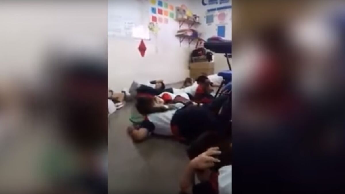 Los 30 niños, tendidos en el suelo,intentaban cantar una canción mientras se escuchaban disparos de armas de fuego en la calle. La profesora grabó el vídeo con su teléfono celular para enviárselo a los padres de los infantes y así demostrarles que sus hijos estaban a salvo.
