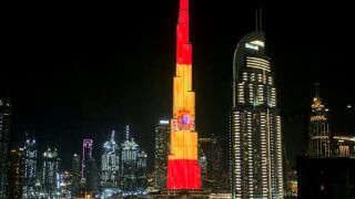 Proyectan la bandera de España en el edificio Burj Khalifa con motivo del 12 de octubre