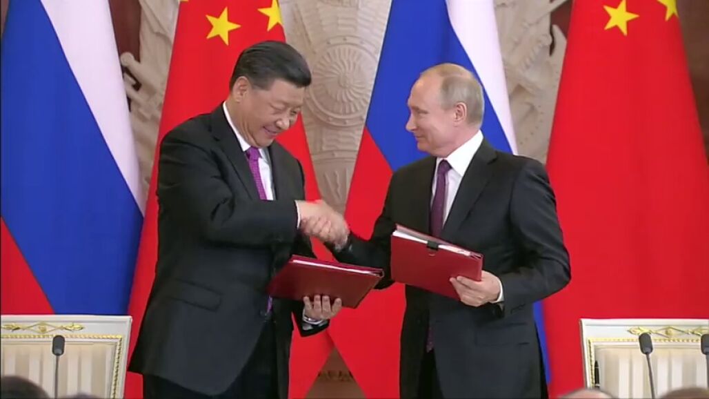 Los presidentes de Rusia y China, Vladimir Putin y Xi Jinping, respectivamente, han escenificado este miércoles en Moscú la buena sintonía entre las dos potencias mundiales que, según han aseverado, ha alcanzado "un nivel sin precedentes".