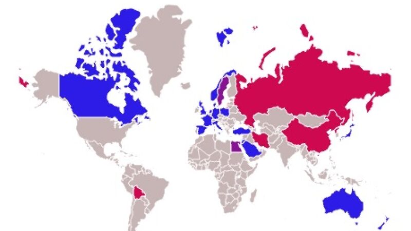 Mientras, Rusia, Irán, China, Bolivia y Corea del Norte (en rojo en el mapa), consideran que el ataque ha sido desproporcionado y son contrarios a la decisión de Donald Trump. Suecia y Egipto (señalados con color morado en el mapa) no han entrado a valorar los hechos y han adquirido una posición neutra en el conflicto.