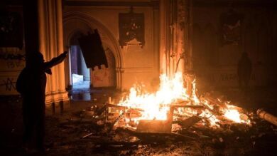 Queman dos santuarios en Chile tras la manifestación que conmemoraba el aniversario de las protestas en el país