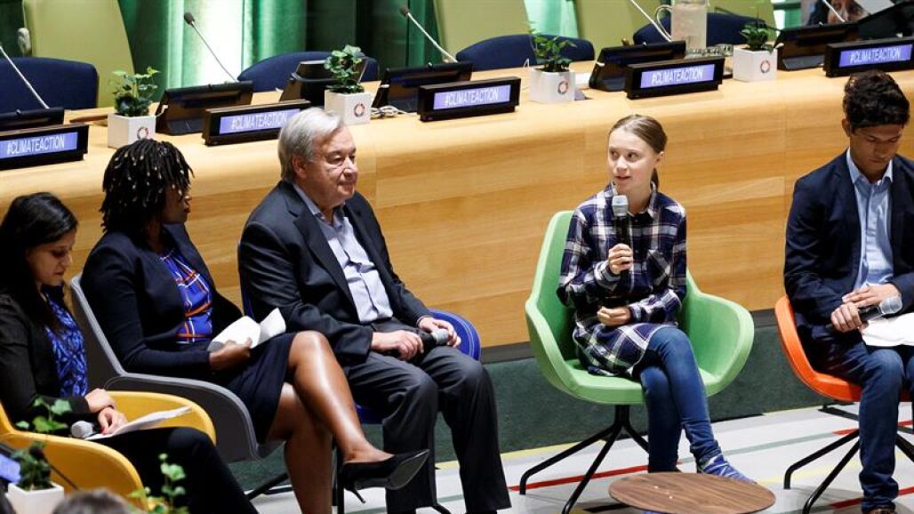 La activista sueca Greta Thunberg, inspiradora del movimiento juvenil contra el cambio climático, y otros tres jóvenes activistas denunciaron este sábado en la ONU junto al secretario general, António Guterres, la inacción ante el cambio climático y pidieron un mundo sin emisiones contaminantes.
