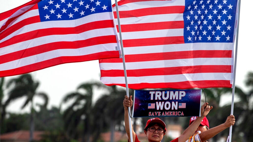 Los seguidores de Trump protestan con sus banderas contra lo que consideran una persecución política.