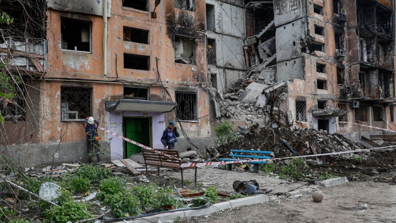 Los bomberos siguen trabajando para rescatar los cuerpos de algunas personas atrapadas bajo los escombros por la guerra en Ucrania.