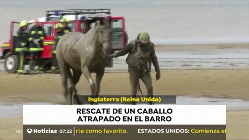 Rescatan a un caballo atrapado en el barro en una playa de Inglaterra