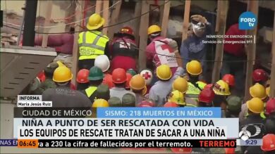 Uno de los momentos más críticos es el rescate de una niña que ha quedado atrapada entre las ruinas de su colegio. Junto a la pequeña hay tres menores con vida. La pequeña Frida, de ocho años, que está atrapada debajo de una mesa de granito en un reducido espacio, consiguió contactar con el exterior. Los equipos de emergencia llevan luchando 15 horas por rescatar a la niña. Mientras los padres y familiares están angustiados, a la espera de noticias de sus hijos desaparecidos.
