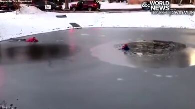 El rescate de un niño de once años que cayó en un estanque helado en Illinois