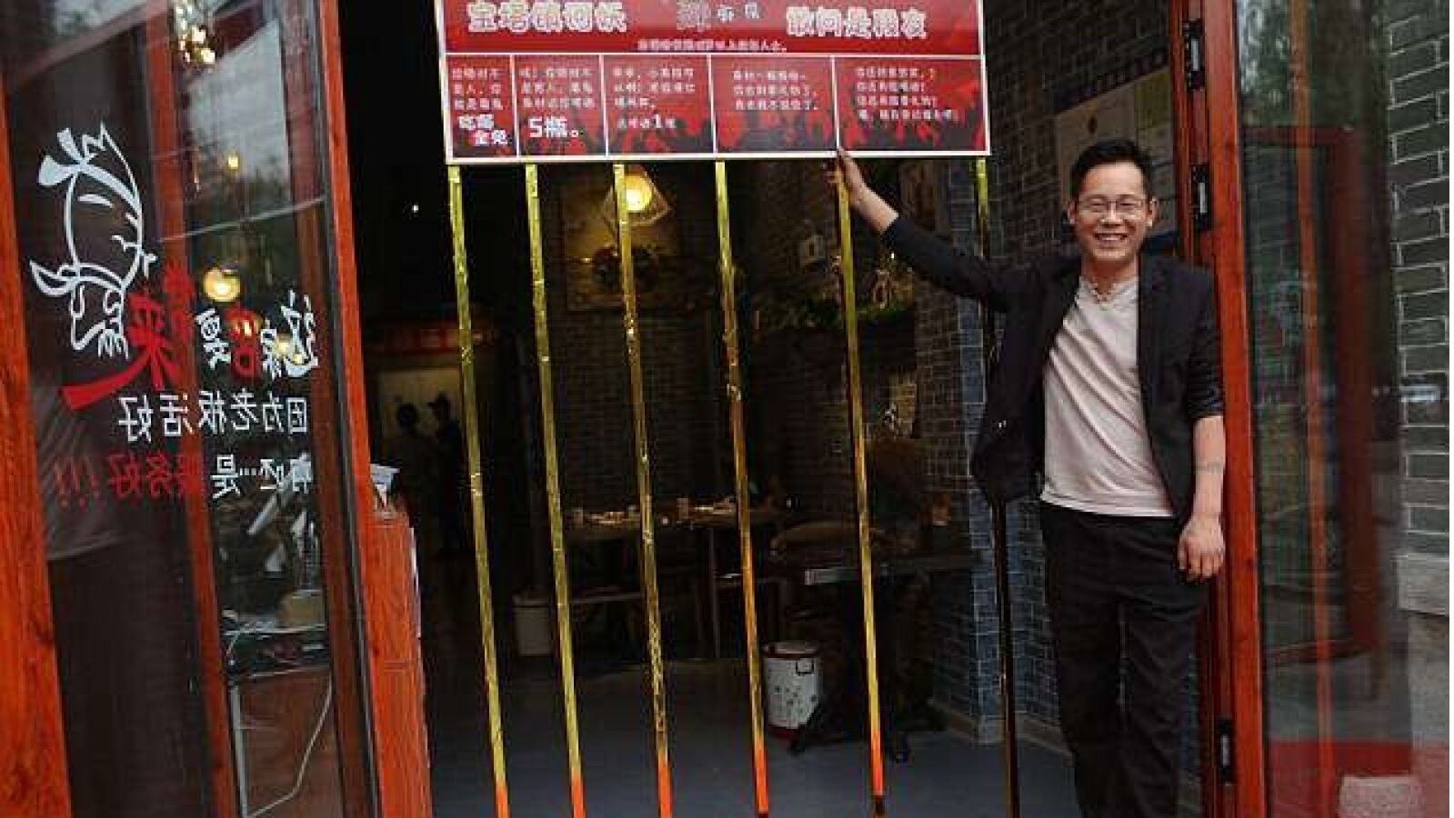El restaurante en la ciudad de Jinan ofrece a los clientes comida y cerveza gratis, si pueden pasar al restaurante a través de un espacio de solo 15 cm de ancho. Un letrero que marca el ancho de los barrotes determina los diferentes tipos de descuentos.