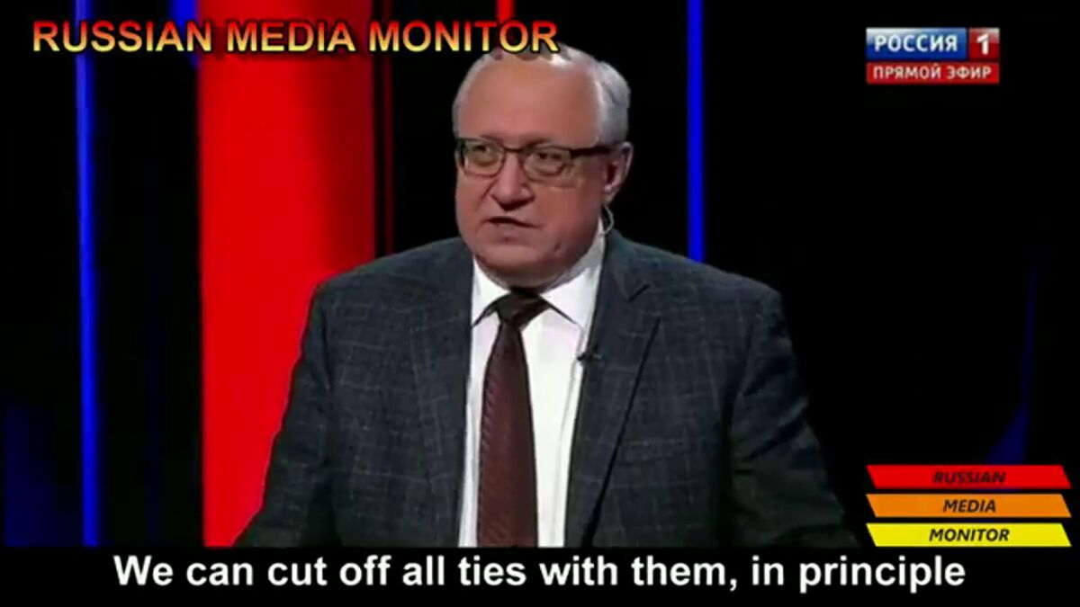 En la televisión rusa, se escuchan muestras de apoyo a la invasión decretada por Vladímir Putin, donde se llega a decir por parte de un presentador que "Ucrania como nación no debe existir", y añadiendo que "tampoco necesitamos a Europa, la podemos destrozar ahora mismo, empezando por los países bálticos". Algunos tertualianos de la televisión rusa sugieren incluso cortar todo el suministro de gas a Europa y provocar un éxodo masivo de migrantes ucranianos a Occidente.