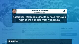 Trump ha asegurado a través de Twitter que Rusia ha informado a Estados Unidos de que está evacuando a la mayor parte de su personal militar de Venezuela. Estados Unidos siempre ha presionado a Moscú para que retire su apoyo a Nicolás de Maduro. De momento Rusia no lo confirma.