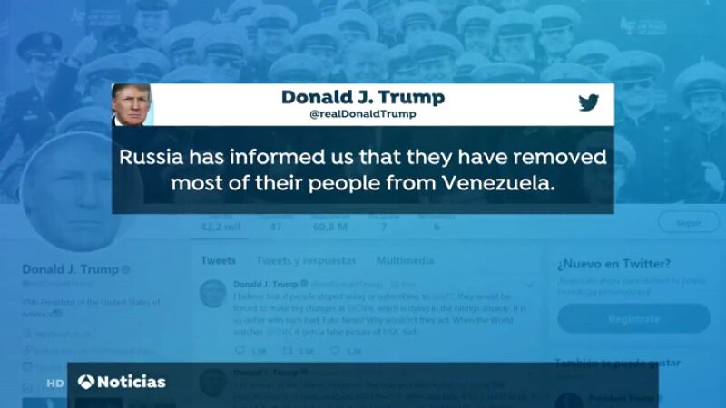 "Rusia nos ha informado de que han retirado a la mayoría de su gente de Venezuela", ha afirmado Trump en un escueto mensaje publicado en su cuenta personal y verificada en Twitter.