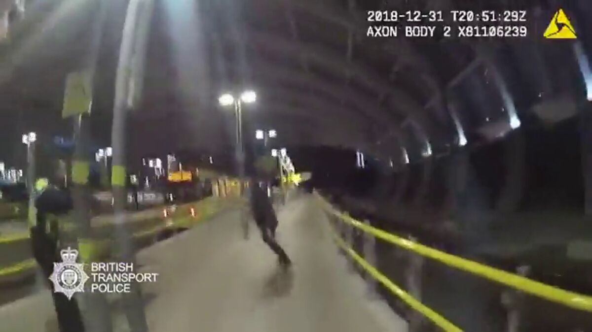 La Policía de Mánchester ha publicado unas desgarradoras imágenes de las cámaras de seguridad que llevaban los agentes que perseguían a un terrorista que empuñaba un cuchillo tras apuñalar a tres personas.