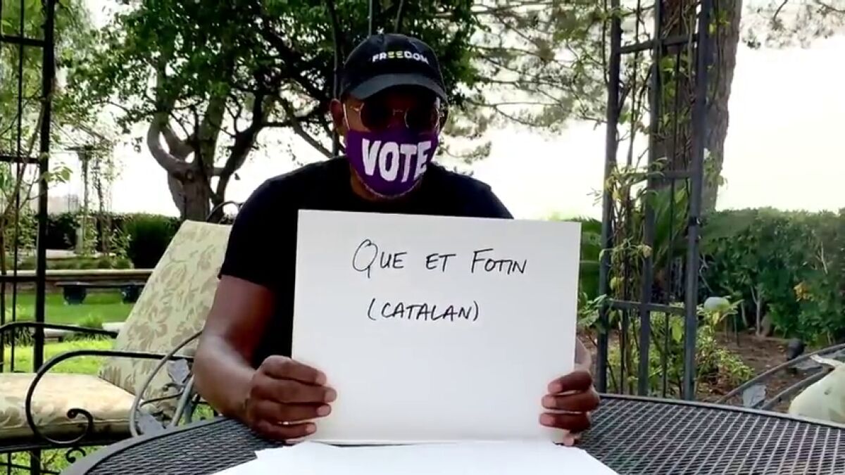 Samuel L. Jackson es una de las estrellas de Hollywood que se han volcado para animar la participación en las próximas eleccionespresidenciales de Estados Unidos y su última idea ha sido enseñar a decir palabrotas en euskera y catalán, entre otros idiomas, para promover el voto de cara a noviembre... y de paso, lanzar un mensaje a Donald Trump.