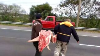 Saquean un camión con carne de cerdo en Argentina