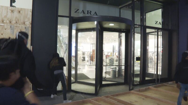 - Los manifestantes destrozaron la tienda de Zara ubicada en la esquina de la calle Broadway con la calle Ann