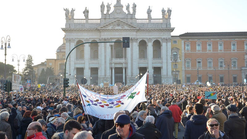 'Las sardinas' convocan a más de 35.000 personas en Bolonia (Italia) entonando el 'Bella Ciao' contra Salvini