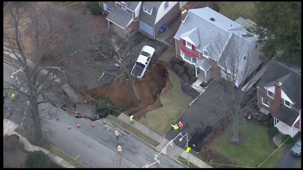 Se abre un enorme socavón en un barrio de Pensilvania