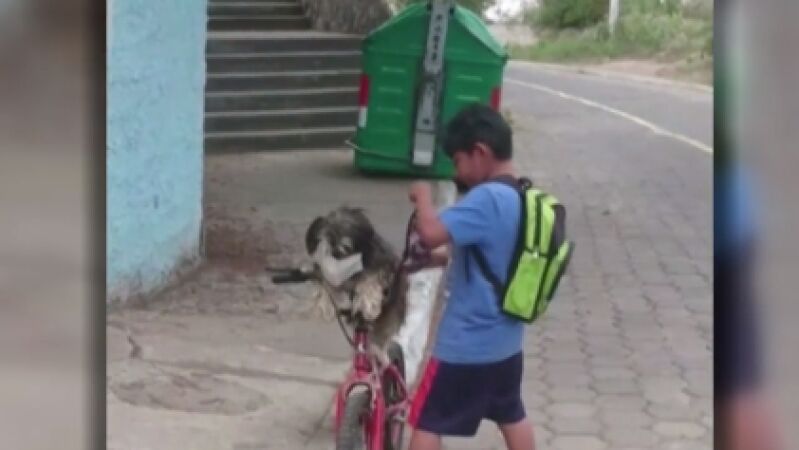 Se vuelve viral el vídeo en el que un niño monta en bicicleta en Ecuador y le pone la mascarilla a su perro