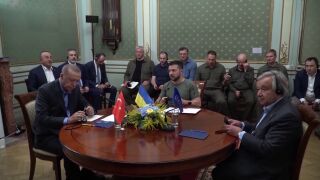 El secretario general de la ONU, Antonio Guterres, se reúne en Leópolis con los presidentes de Ucrania y Turquía, Volodímir Zelenski y Recep Tayyip Erdoğan, para hablar sobre el peligro en la central nuclear de Zaporiyia.