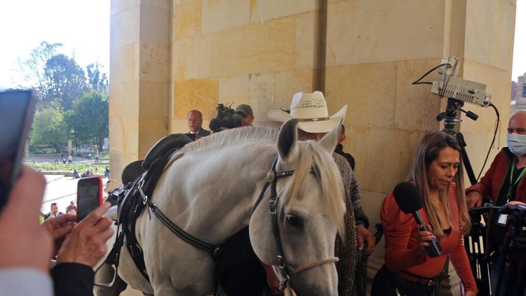 Un senador colombiano entra al Congreso con su caballo alegando que es su "mascota"