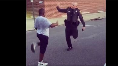 El sincronizado baile entre un policía y un adolescente se vuelve viral en las redes sociales