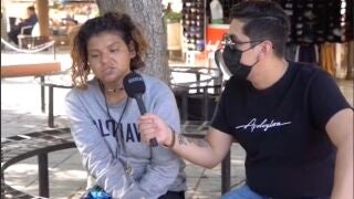 La mujer saluda en un momento del vídeo a su 'auntie' y a su 'nana' y les pide que si están viendo el vídeo "vengan a por mí porque estoy secuestrada". "Pues dicen que estoy secuestrada, unos dicen que soy de Italia, otros de Japón. Que vengan por mí porque la verdad no sé de dónde soy; si soy de aquí o soy de allá", algo que dejó perplejo al entrevistador.