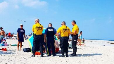 Margaret Reynolds, una mujer británica de 67 años, está herida grave después de que una sombrilla que salió volando le atravesase el tobillo derecho en Seaside Heights, una playa de Nueva Jersey, EEUU.