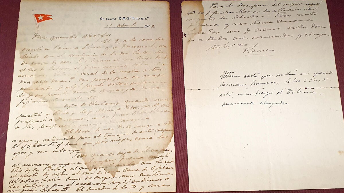 Concretamente, fue un pasajero uruguayo el que redactó el 11 de abril de 1912 esta carta que iba dirigida a su hermano y que la envió desde Irlanda. "Última carta que escribió mi querido hermano Ramón. A los 3 días de esta, naufragó el Titanic, pereciendo ahogado", dice la nota que posteriormente escribió el receptor de la pieza.