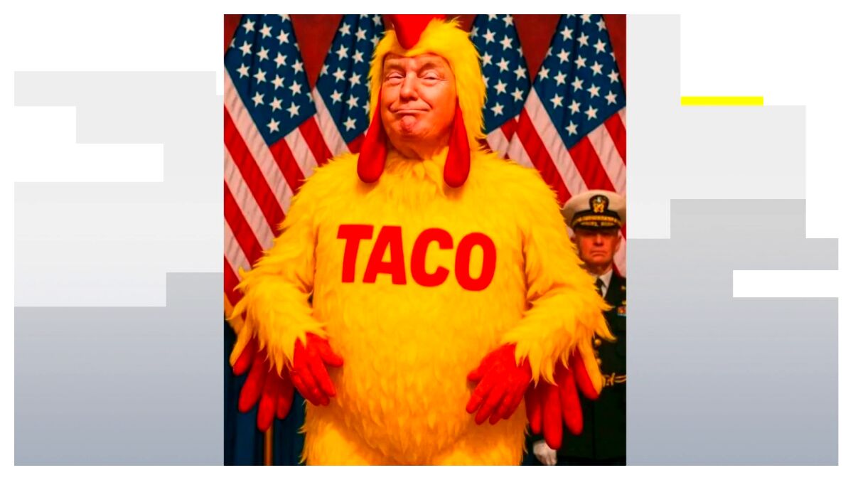En redes sociales, en memes y hasta en medios internacionales. Un apodo se ha instalado alrededor de Donald Trump que no le hace ninguna gracia, llegando a incluso enfurecerle públicamente: 'TACO'. Cuatro letras que resumen una crítica directa a su forma de actuar: 'Trump Always Chicken Out', lo que significa que Trump siempre se acobarda.