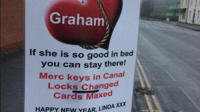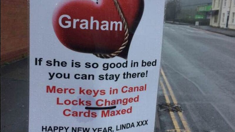 Linda es una mujer de Warwick que ha sabido vengarse de la infidelidad de su pareja. Sin pensárselo dos veces, ha colgado carteles por todo su pueblo informándole de que las llaves de su Mercedes están en el río, la cerradura de casa cambiada y las tarjetas de crédito en el tope.