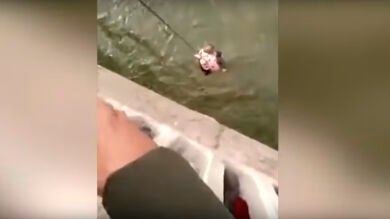 Un taxista de la ciudad de Ruzhou (China) ha salvado la vida a un bebé que, según el informe policial, fue arrojado al río por su madre. Las dramáticas imágenes muestran cómo el niño es rescatado con una cuerda después de que su madre lo arrojara al río Jing por un puente.