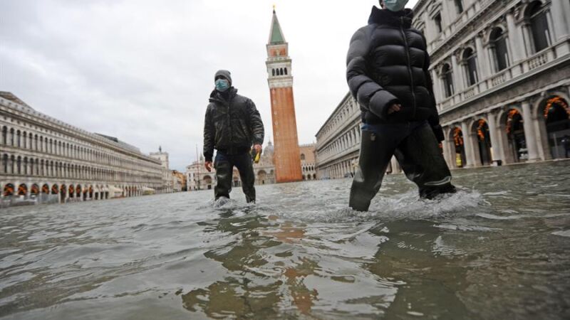 La plaza de San Marcos y el centro histórico de la ciudad están anegados debido a que el sistema de diques, conocido como MOSE y que se tardó más de 15 años en construir para proteger Venecia de las cada vez más frecuentes inundaciones, ha fallado.