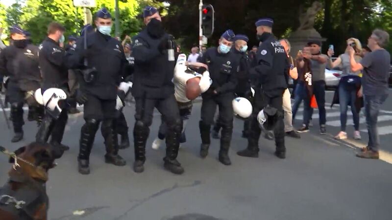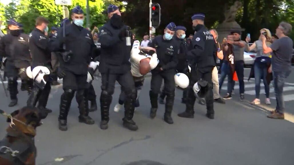 Esta tarde se han vivido momentos de tensión en Bruselas. Unos 3.000 negacionistas se han concentrado esta tarde en varias manifestaciones ilegales. En total, habían sido convocadas hasta 9 protestas y en las 2 no autorizadas se ha protestado por las medidas contra la pandemia de coronavirus, pero también se ha mostrado apoyo al militar ultraderechista que lleva 10 días huido.