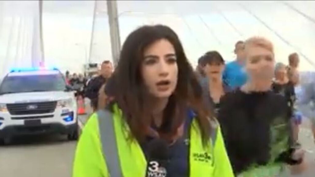 Alex Borzajian, reportera de WSAV TV, informaba en directo desde una carrera popular en Savannah, una ciudad de Georgia, cuando hombre le tocó el trasero. La cara de la periodista fue de absoluto asombro.
