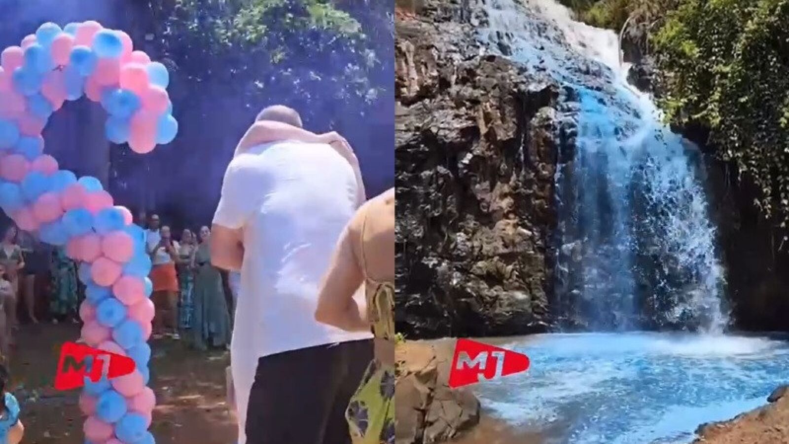 Las pretensiones de los futuros padres llegaron a más e incluso utilizaron colorante para teñir el agua. En los vídeos subidos a las redes sociales, que poco después fueron borrados tras las críticas de algunos usuarios, se puede ver el momento en el que la cascada cambia de color a un tono más azulado. Mientras eso ocurre la pareja y el resto de participantes celebran la noticia con música y abrazos.