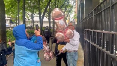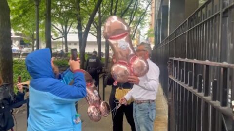 Lanzan globos en forma de pene a favor de Trump frente a la corte donde se le juzga