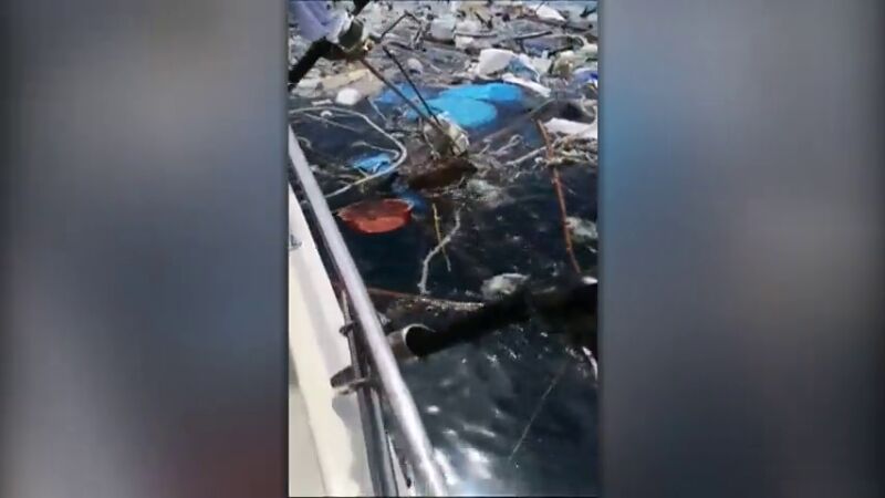 El agónico rescate de dos tortugas atrapadas entre la basura y una red de pesca en Tailandia