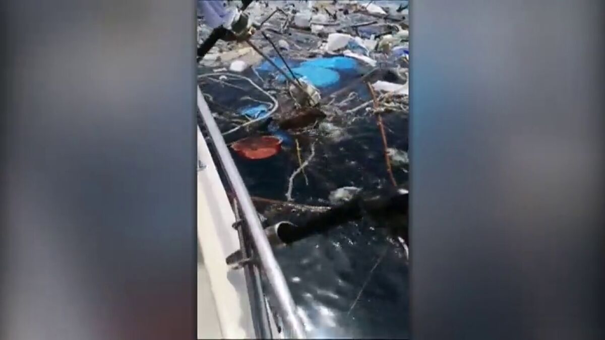 Dos tortugas enredadas en basura flotante fueron rescatadas por un grupo de pescadores frente a la isla tailandesa de Phuket.