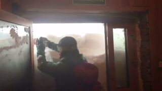 Tres meteorólogos que se habían planteado vivir la tormenta de nieve desde dentro y estudiar su comportamiento, quedaron atrapados por la intensa nevada que dejó clausuradas las salidas de las instalaciones en las que se refugiaron. Así encontraron el paisaje tras la tormenta al abrir la puerta.