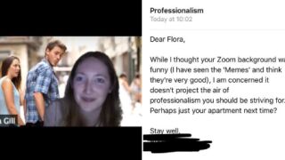 "Si bien pensé que su fondo de 'Zoom' era divertido (he visto los 'memes' y creo que son muy buenos), me preocupa que no proyecte el profesionalismo por el que debería esforzarse, ¿Quizás sólo su apartamento la próxima vez?", le dijo su jefe después de la videoconferencia.