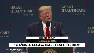 El presidente de EE.UU. aprovechó los gritos de ánimo de un grupo de seguidores para reclamar 12 años de mandato aunque el máximo legal es de ocho.