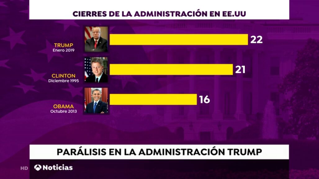 El presente cierre gubernamental ha superado el récord que hasta ahora ostentaba la mayor longevidad: el acontecido durante 1995-96 bajo el mandato de Bill Clinton (1993-2001) por una disputa presupuestaria en cuestiones de sanidad, educación y medio ambiente. Y en este caso, aún no hay indicios de que Trump y la oposición demócrata puedan alcanzar un acuerdo que le ponga fin.