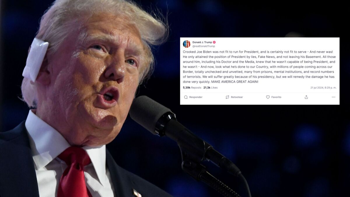 Este domingo, el actual presidente de los Estados Unidos ha compartido una carta en la que comunica la retirada de su candidatura y en la que propone a Kamala Harris como su sustituta. Ante estas declaraciones, Donald Trump no ha tardado en expresar que "el corrupto de Biden no era apto para postularse para presidente y ciertamente no es apto para ocupar el cargo, ¡y nunca lo fue!".