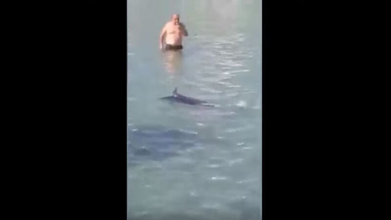 En un vídeo que se ha hecho viral se puede ver como un grupo de personas lanzan piedras al animal que intenta huir del lugar. En las imágenes también se ve como varias personas se lanzan al agua para intentar atrapar al animal.